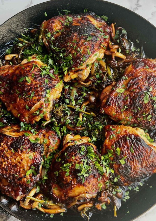 A simple, rich and delicious one pan braised chicken marinated in honey, garlic and dijon and served with caramelized onion, mushrooms and broccolini. The sauce that is created from the chicken juices and the marinade is SO delicious so make…